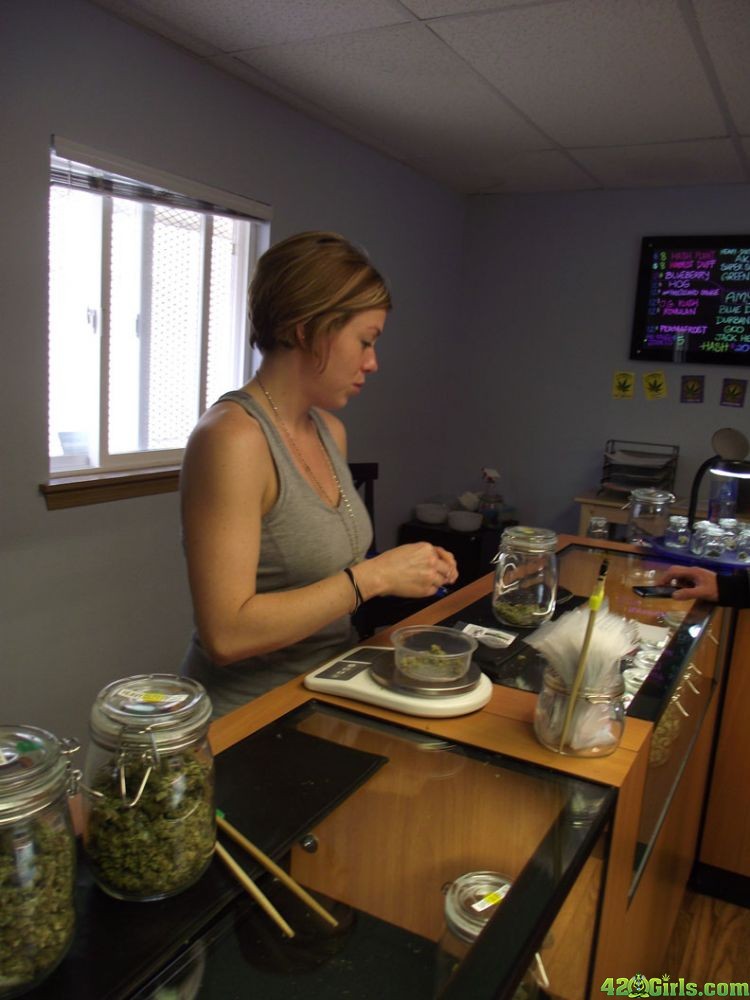 Budtender Amy Banksy at Rainier Wellness Center, Tacoma, Washington.
